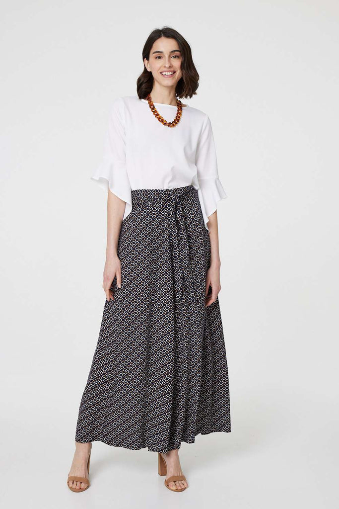 Ikat Print 3/4 Sleeve Wrap Maxi Dress