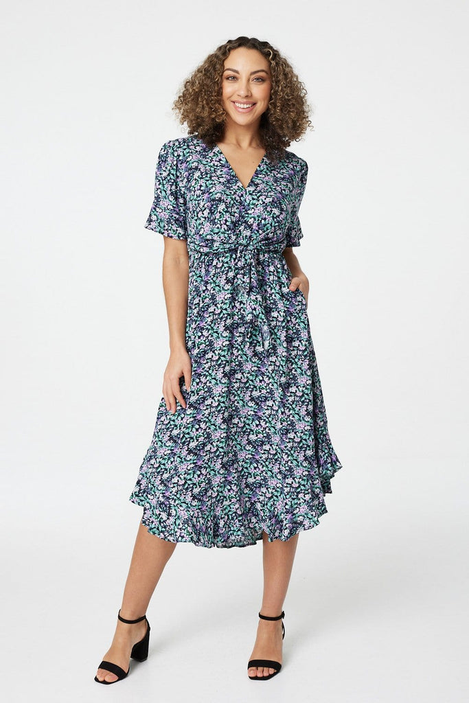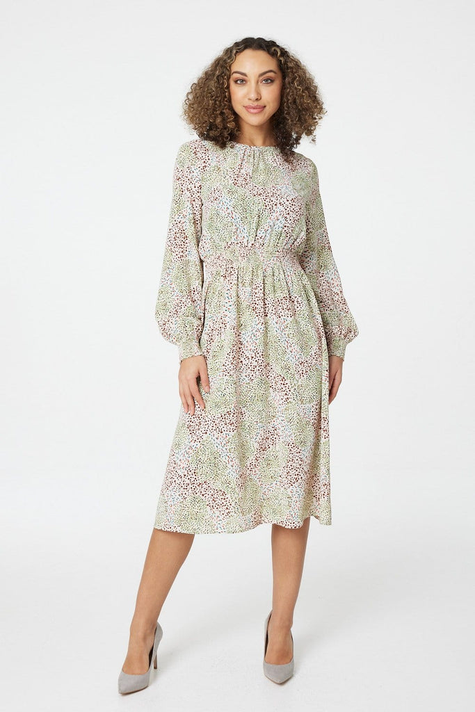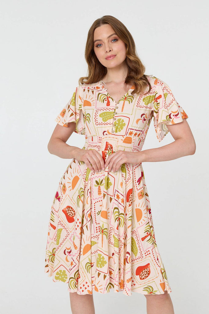 Ikat Print 1/2 Flared Sleeve Midi Dress
