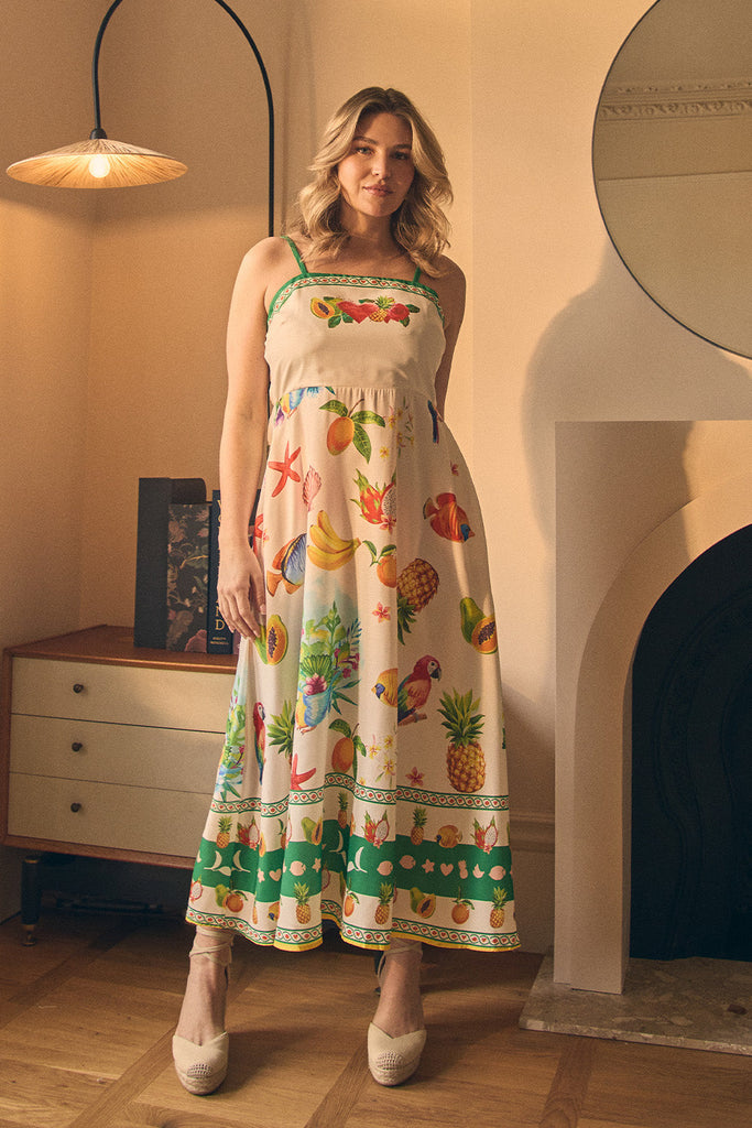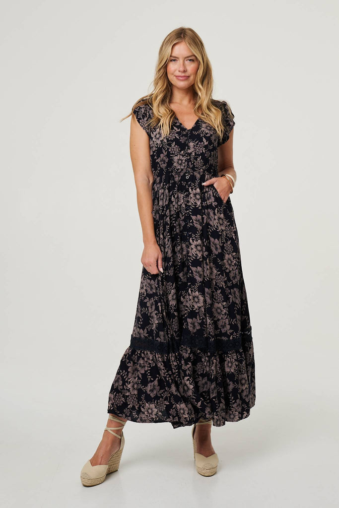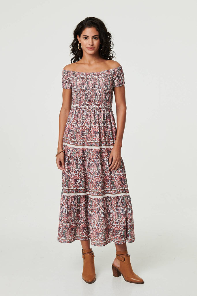 Leaf Print Puff Sleeve Wrap Midi Dress