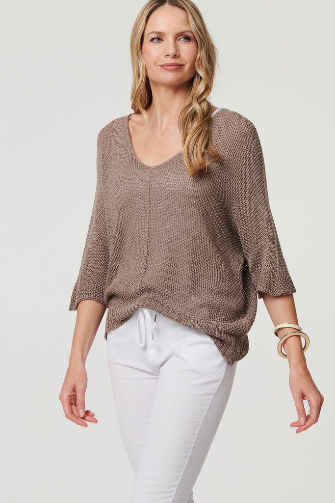 Sheer Mesh Texture 3/4 Sleeve Jumper