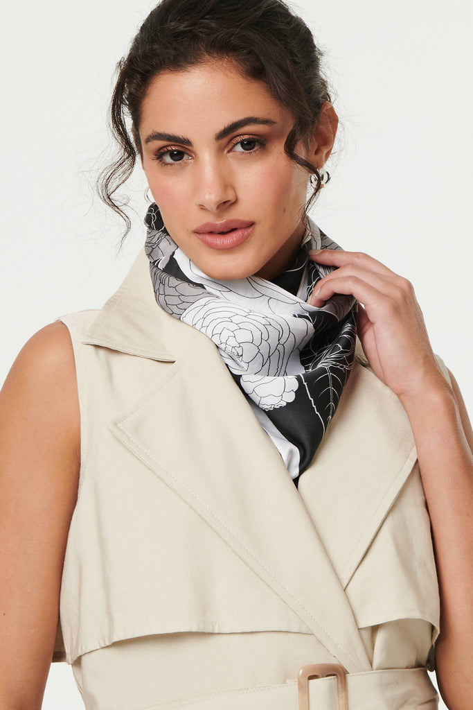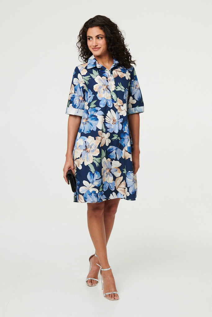 Abstract Tie Neck Puff Sleeve Midi Dress