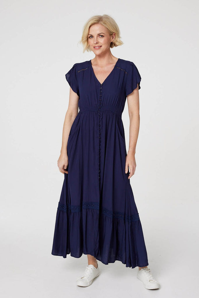 Vintage Floral 3/4 Sleeve Maxi Dress