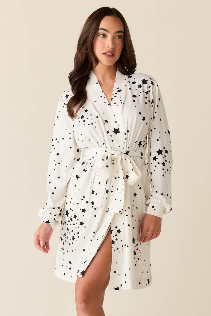 Quinn Cloud Jersey Banded Short Robe in White Stars