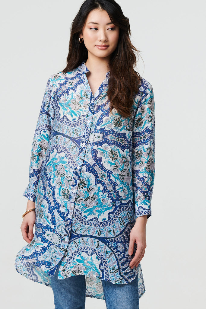 Ikat Print V-Neck 3/4 Sleeve Blouse