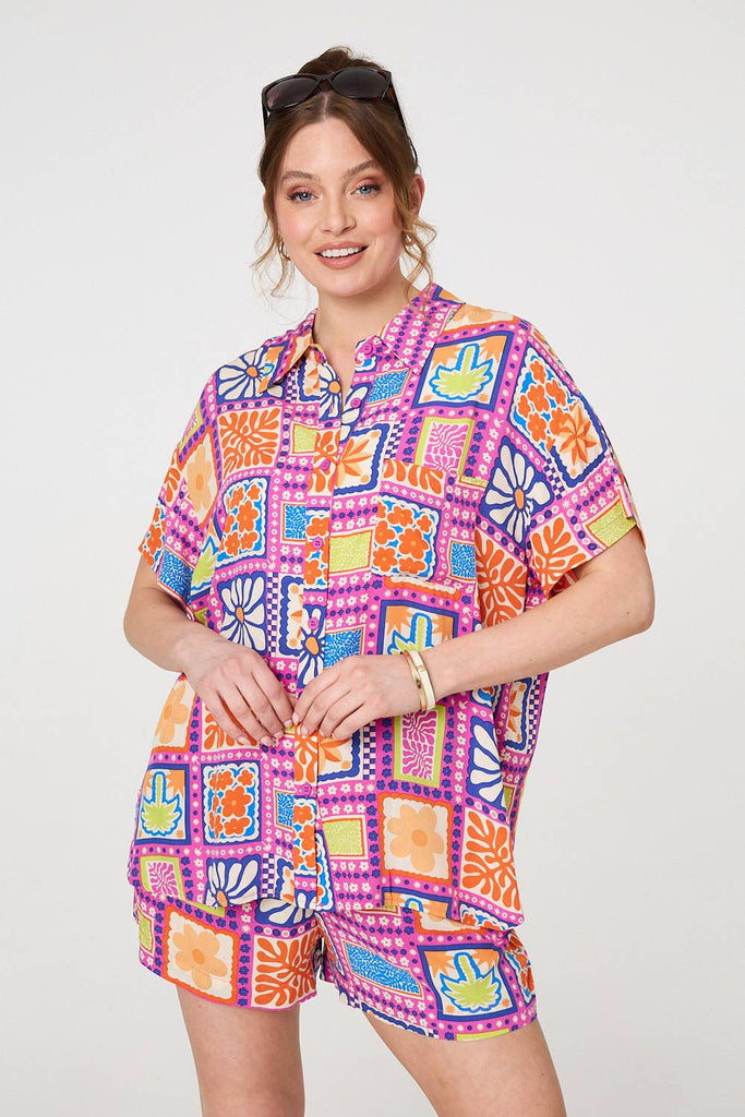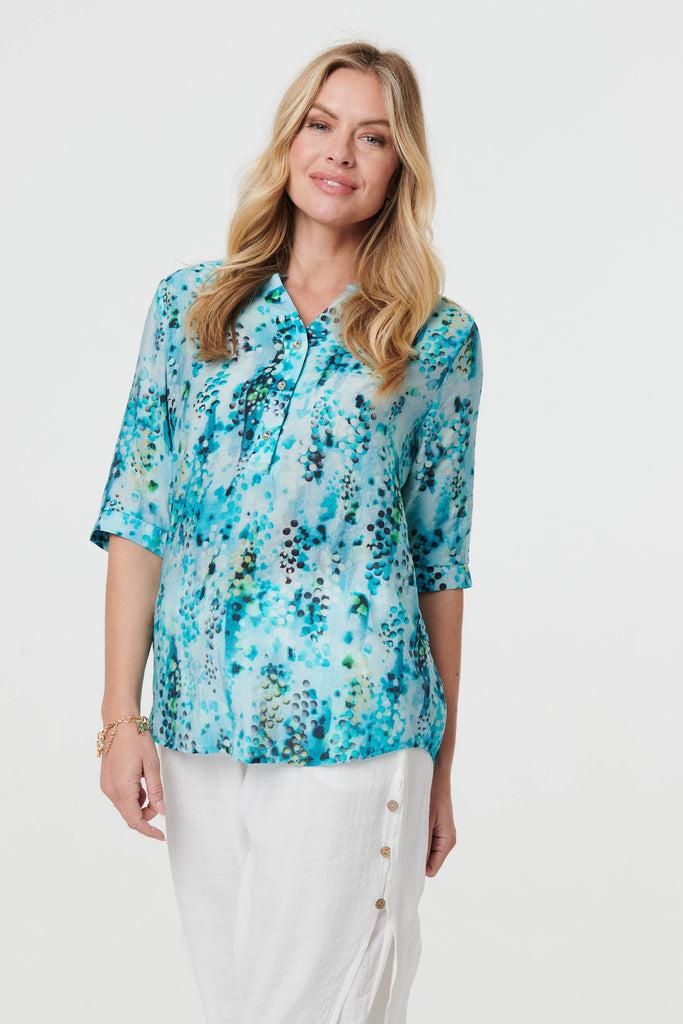 Printed 3/4 Sleeve Relaxed V-Neck Blouse