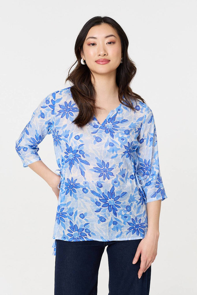 Floral 3/4 Sleeve Tie Detail Blouse