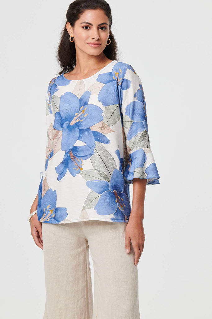 Floral 3/4 Flared Sleeve Relaxed Blouse
