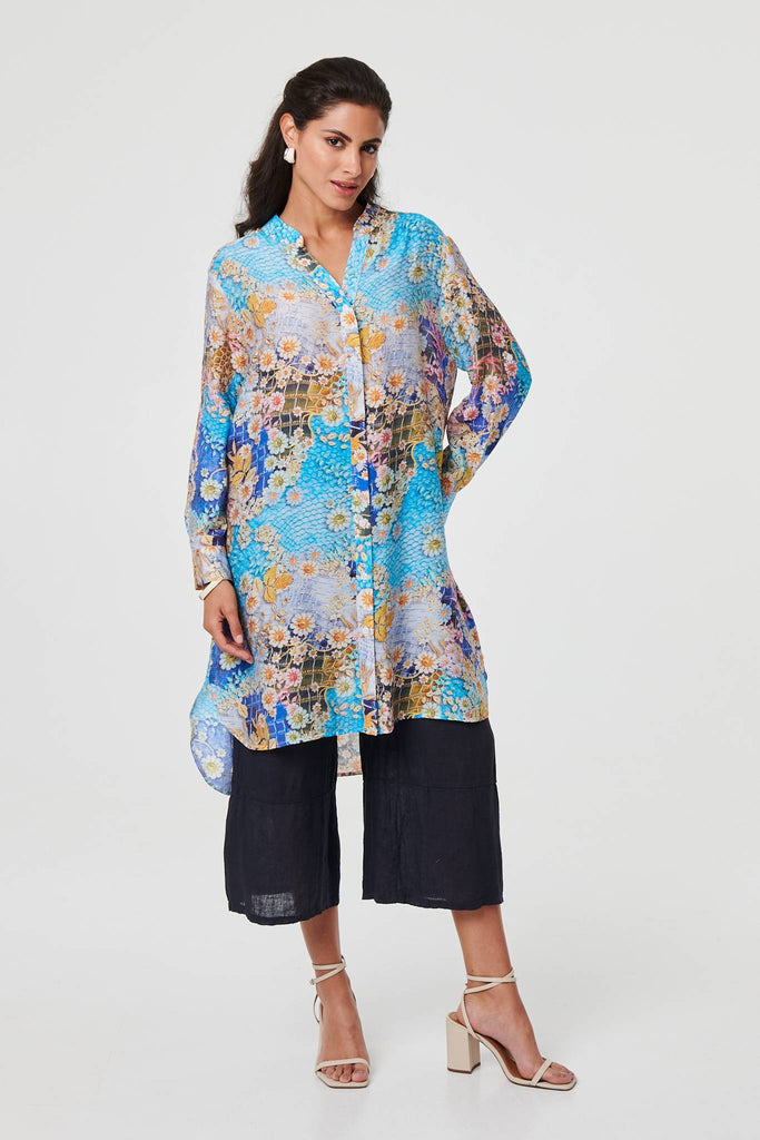 Floral Long Sleeve Longline Tunic Shirt