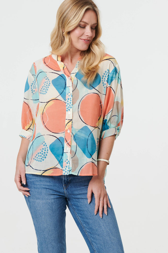 Abstract Print 3/4 Sleeve Relaxed Shirt