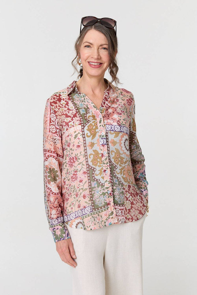 Baroque Print 3/4 Sleeve Relaxed Blouse