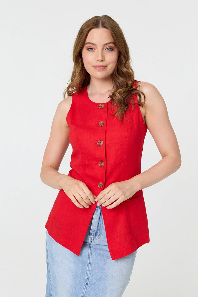 Relaxed 3/4 Sleeve Button Neck Blouse