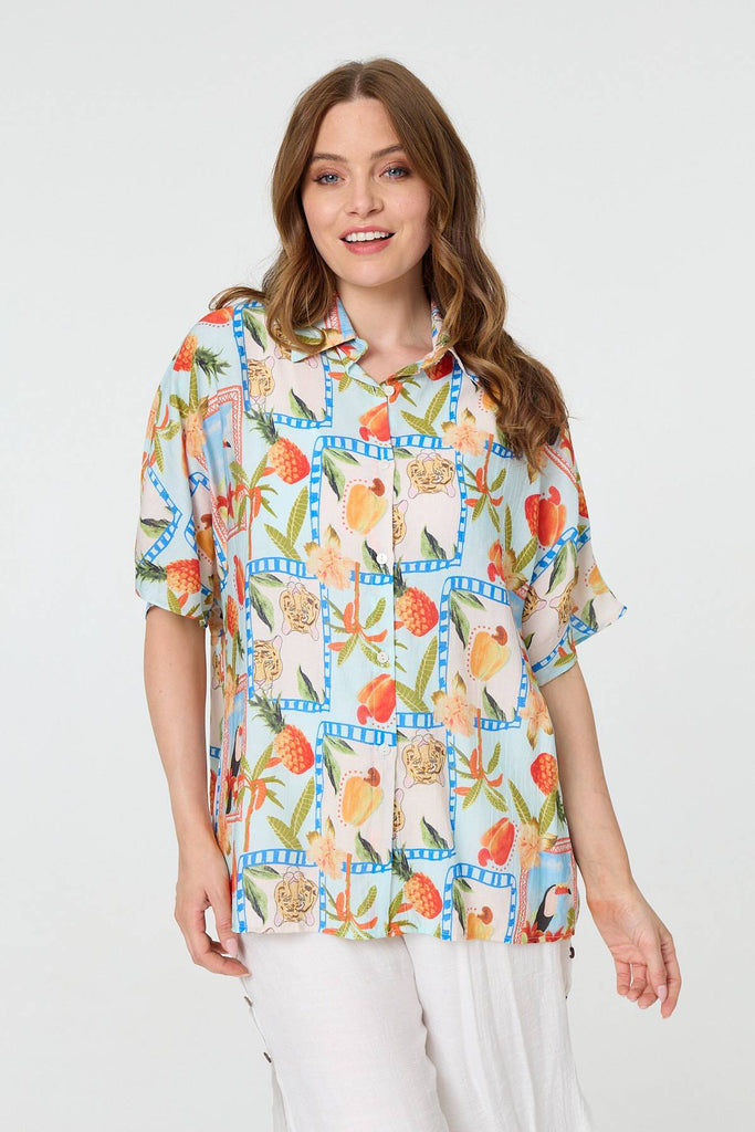 Patchwork Relaxed 1/2 Sleeve Shirt