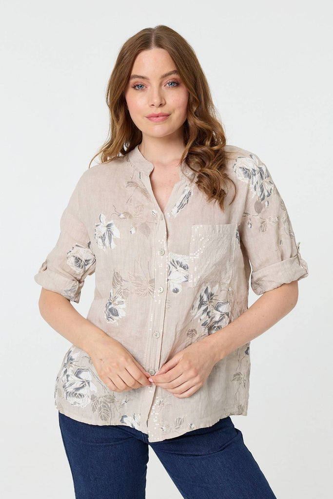 Floral 3/4 Sleeve Relaxed Boxy Blouse
