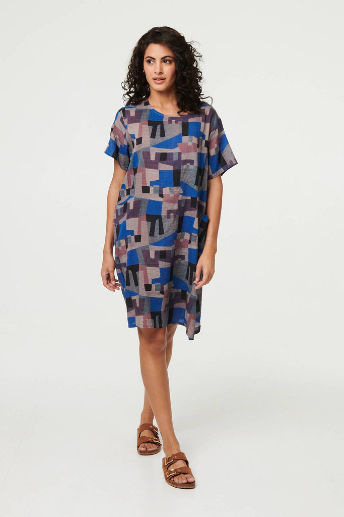 Abstract Relaxed Knee Length Shift Dress