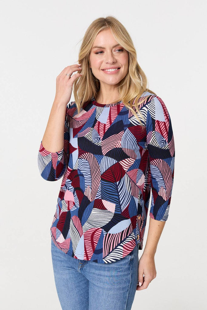 Abstract Print 3/4 Sleeve Curve Hem Top