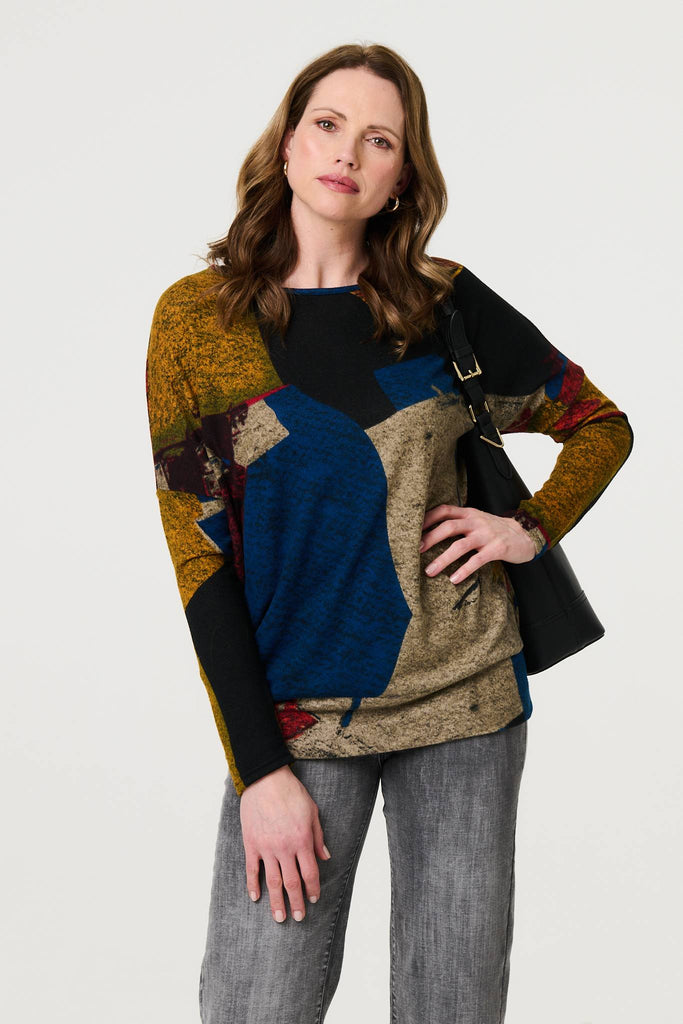 Abstract Long Sleeve Scoop Neck Top
