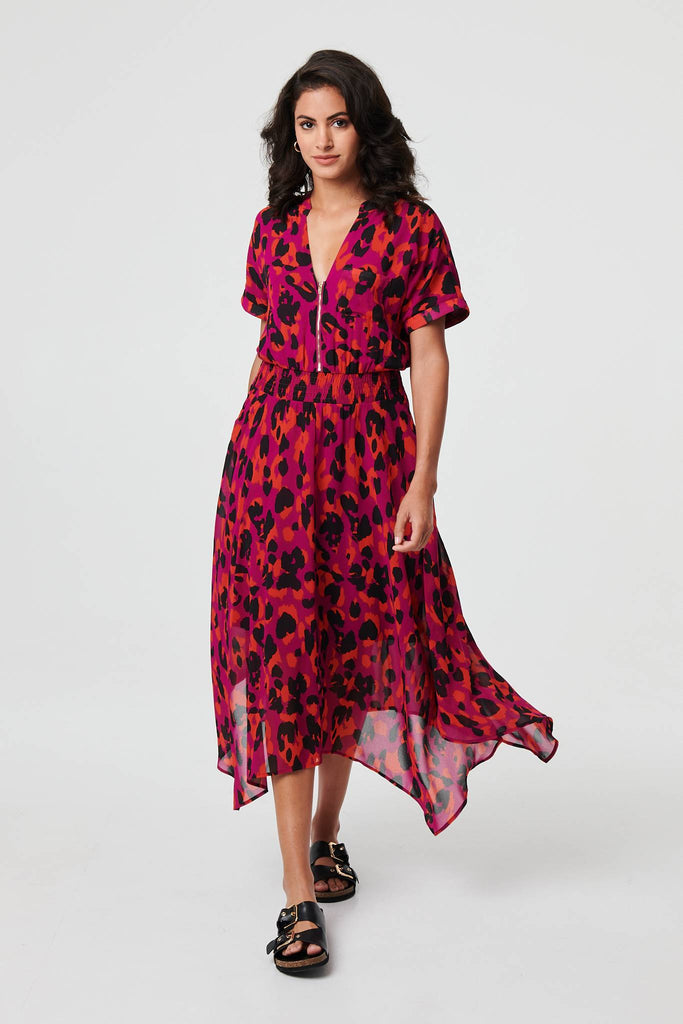Animal Print Zip Hanky Hem Midi Dress
